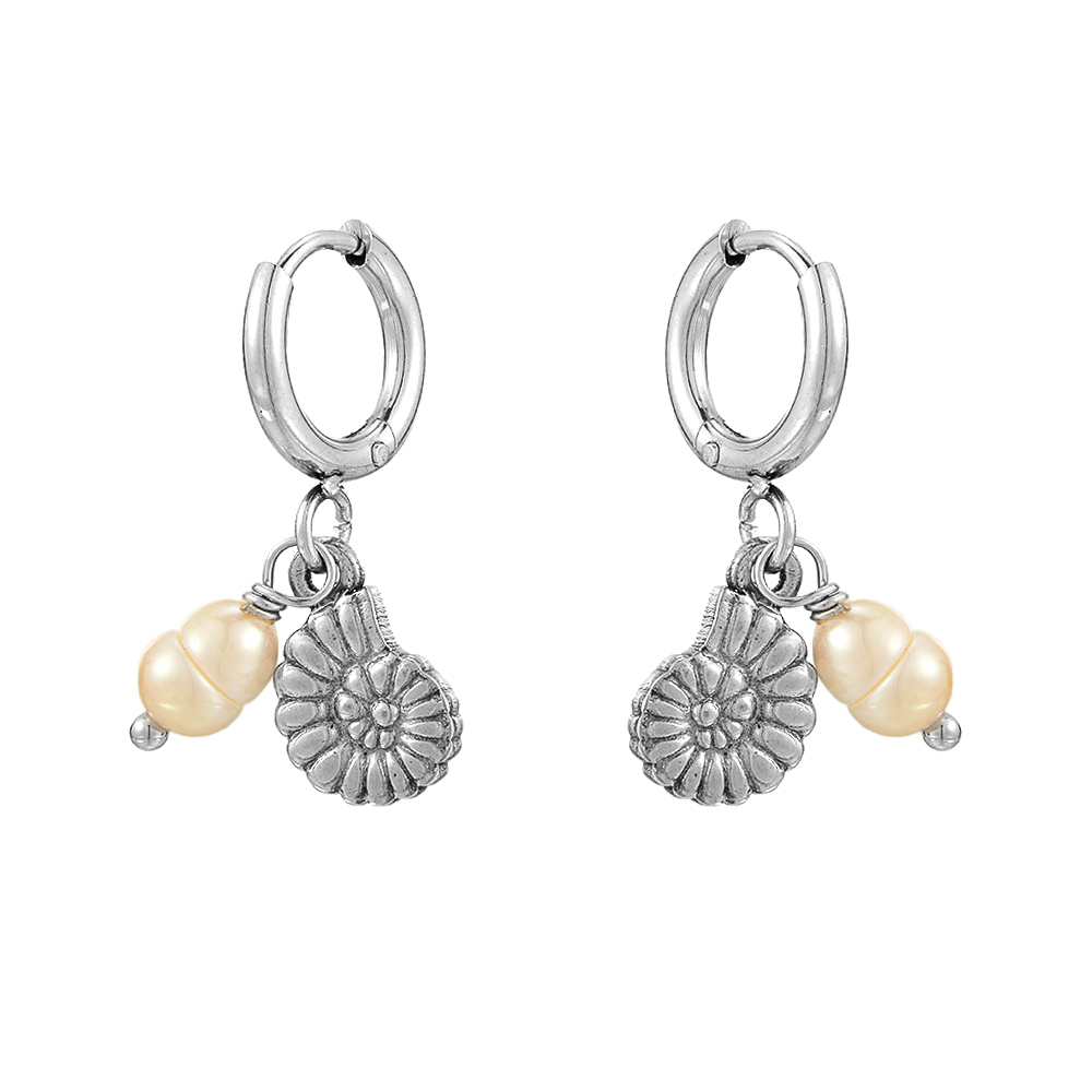 E2239 DAINTY HOOP EARRINGS W/ SHELL & PEARL